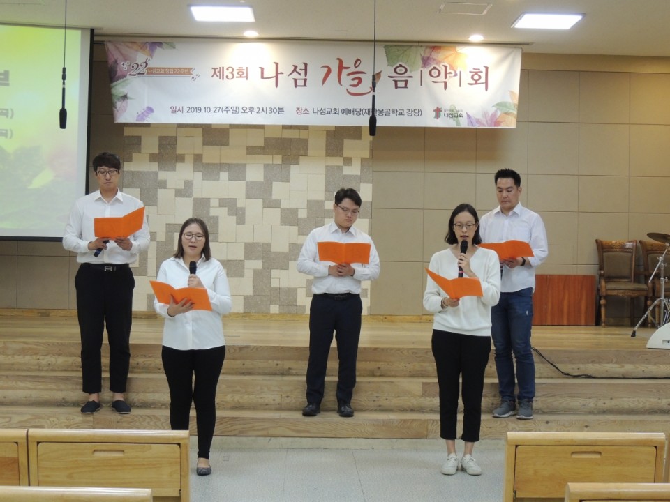 2019 나섬가을음악회 (10월 27일) 페이지 정보 작성자 나섬교회 작성일19-11-03 15:08 조회769회 댓글0건 관련링크 이전글 다음글 목록 본문 . 댓글목록 등록된 댓글이 없습니다. 이전글 다음글 목록